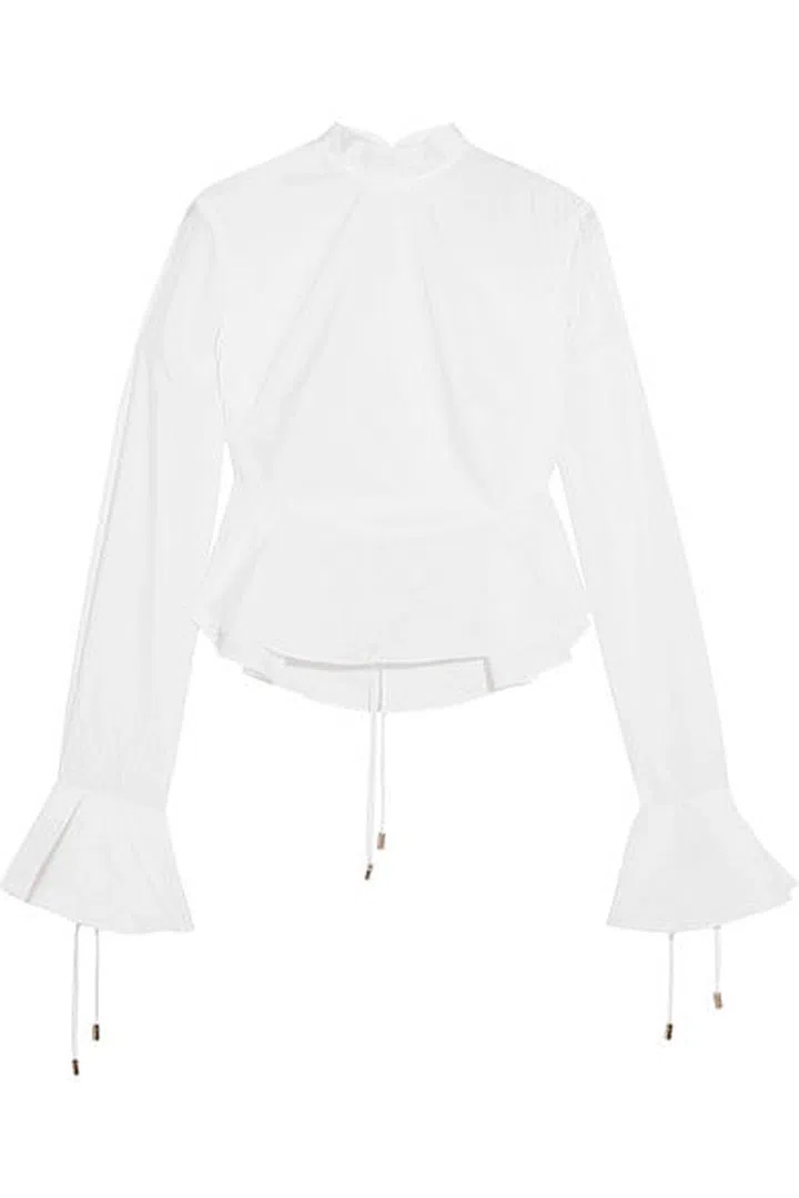 This Michael Lo Sordo top is cut from white cotton-poplin and detailed with fluted cuffs to mirror the elegant tiered peplum. But the REAL party is at the back – it turns to reveal corset-inspired lace-up ties, a detail not to be missed in Spring '17. Team with a pair of jeans to let the statement top do the talking, or choose a matching skirt to rock the modern bridal look.