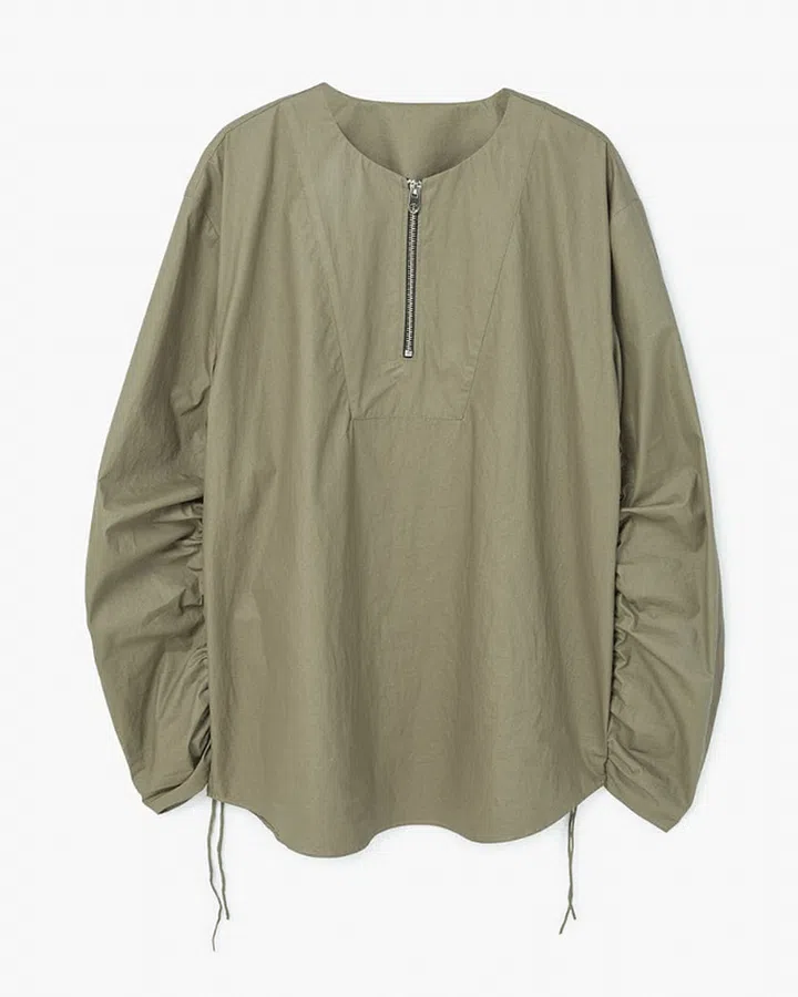 This khaki cotton blouse immediately caught our eye because of the adventurous camper feel. It certainly looks like a super wearable translation of a trench coat topped off with adjustable sleeves and a front zip. Channelling your inner ‘outdoors’ girl will be easy breezy in this bulky number.