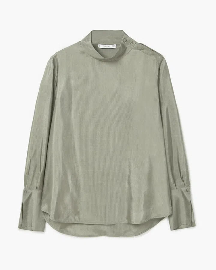 This satin textured blouse is a fuss-free piece for a polished OOTD. Simply tuck it into a pair of high waisted belted pants and pull your hair into a sleek ponytail to emphasise your features with the rounded neck. Oh, and don’t forget the red lipstick.