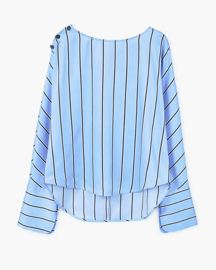 Now this is one chic long-sleeved top we’d gladly wear over and over again. The soft material makes for a perfect lounging outfit, especially with the cute decorative buttons on the right shoulder. Simply match it with fitted white pants to balance out the “puffiness” on top, and throw on a pair of smart loafers.