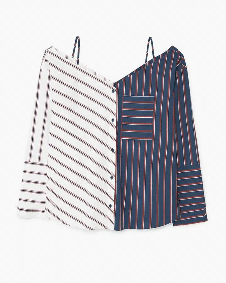 This striped blouse is definitely at the top of our list for pulling off the nautical look with a twist. With the hybrid of colours, off-shoulder design and V-neck, what’s not to love? Bonus: The long sleeves have slits, adding to the sweet and sexy vibe. We’re sold.