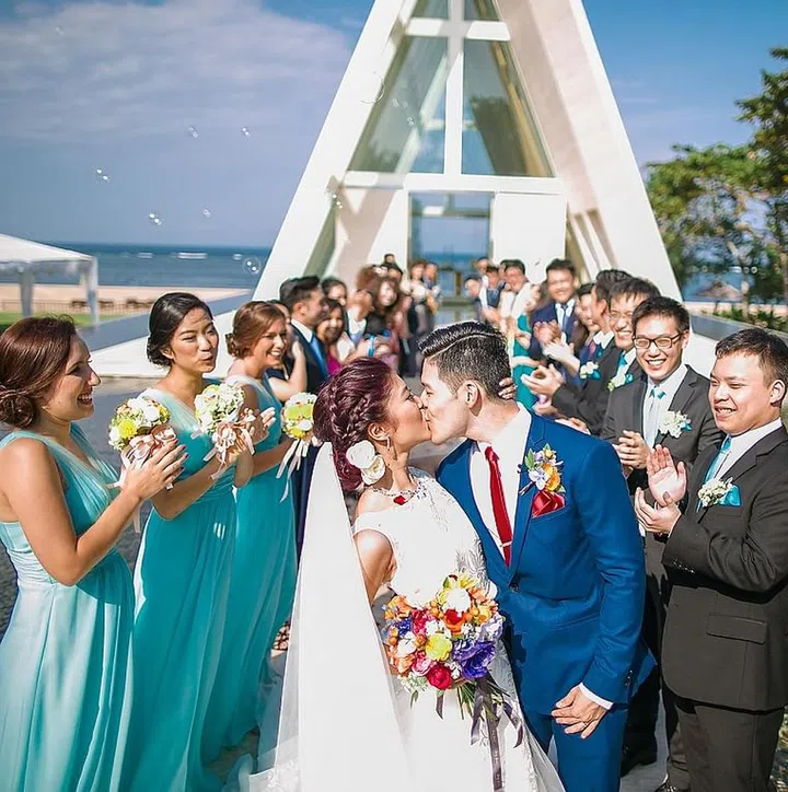 Melissa and Reinaldi (or Rei) met on the first day of maths class in high school. "Rei was one of the new students. We were both in relationships and didn't have many classes together. Even when we did, we were never seated close to one another. Little did we know that a year later, we would both be single and become the best of friends. Then, we shared the same group of friends during the last year of high school, and although we were polar opposites of one another (he's the logical one and I'm the over-emotional one), something just clicked. He finally proposed after we'd been together for seven years," says Melissa.