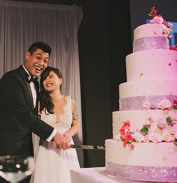 Rachel and Po Loong first met at a Christmas party in 2001. They were family friends at first, but quickly became close friends, says Rachel. Romance only blossomed later in 2004 when they both attended Bronte College of Canada to further their studies. The couple tied the knot in 2015. "Getting married didn't feel that different to us as we'd been together for 11 years. But the moment we were pronounced man and wife was still a huge highlight," says Rachel.