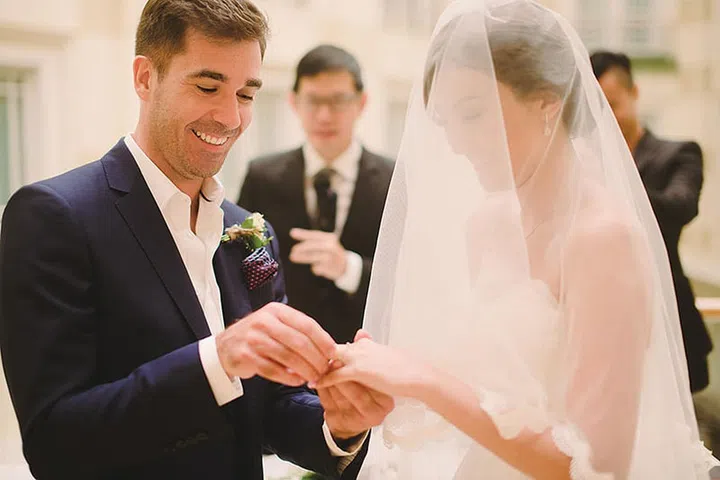 Lim Shuzhen met Kevin Lee, who is from Canada, while they "were both working for the same company in Hong Kong. We shared instant chemistry and six months into our relationship, we were discussing marriage! He proposed in front The Bund in Shanghai, China," says Shuzhen.