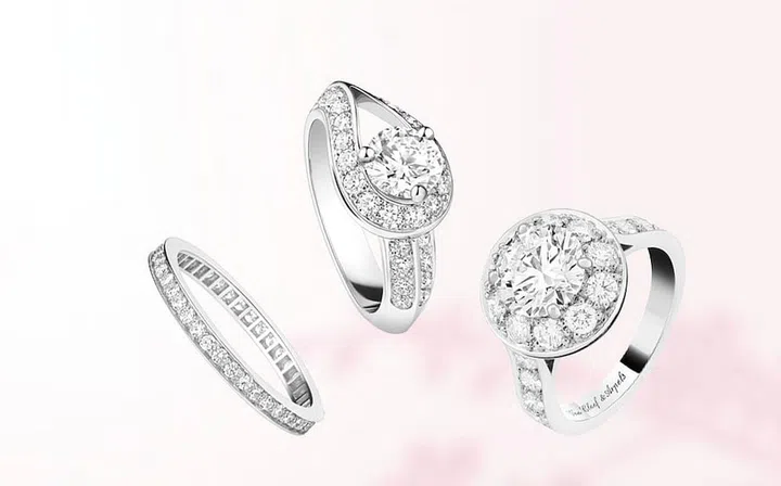 Say “I do”: The Timeless Wedding Band, with brilliant-cut diamonds totalling approximately 1.45 carats, is a sparkling reminder that love is forever. Then, there’s the Chopard Ice Cube White Gold Geometric Diamond Band Ring, which is made up of perfect cubes with embedded diamonds, adding a contemporary edge to a classic band design.