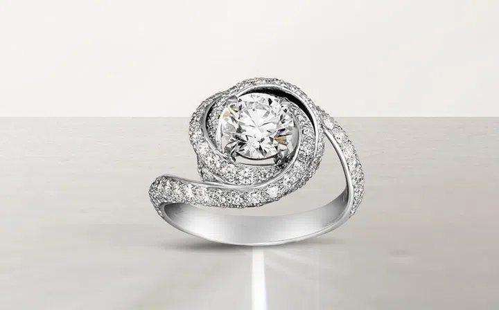 Say “Yes”: Signed and numbered, the signature Solitaire 1895 has been a Cartier star since 1895. Displaying optimal brilliance, it has a design that is elegant and timeless, with the centre stone held by four prongs. Another classic option is the Trinity Ruban, a reinterpretation of the Trinity ring. With a brilliant-cut diamond solitaire and a swirl of platinum paved with glittering diamonds celebrating commitment, this unique engagement ring glitters at every angle.