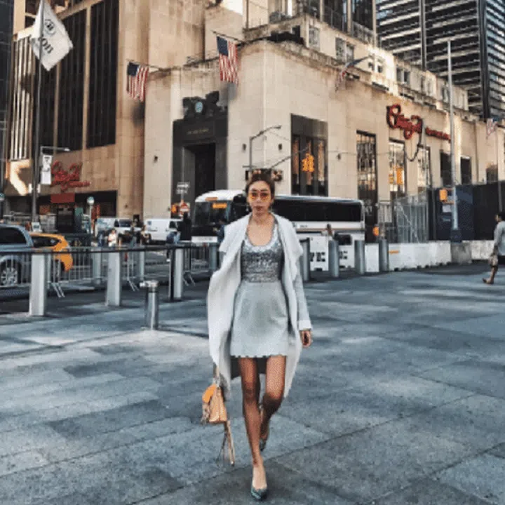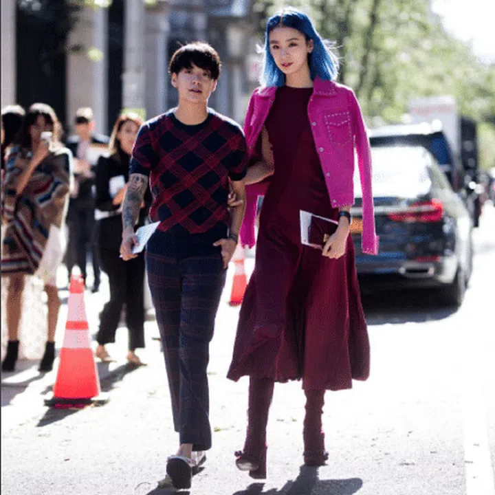 The American-born fashion chameleon best known for her K-Style hosting gig, showed up at the Tory Burch Spring Summer 2018 runway wearing a fall appropriate maroon frock, topped off with a bright fuchsia jacket draped over her shoulders.