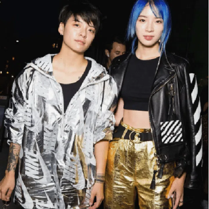 The rapper from South Korean girl group, f(x), attended the VFILES show with fashionista Irene Kim in an oversized metallic windbreaker from Nike. The grungy and cool look would not be complete without distressed jeggings and combat boots. Fun fact, the androgynous musician was styled by Irene Kim.