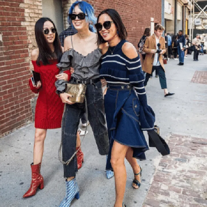 Putting Southeast Asian on the map is local designer and fashion entrepreneur Yoyo Cao. She was channelling some serious 90s vibes when she showed up at the Self Portrait show with her pointed toe heeled boots and oversized sweater dress worn off the shoulder.