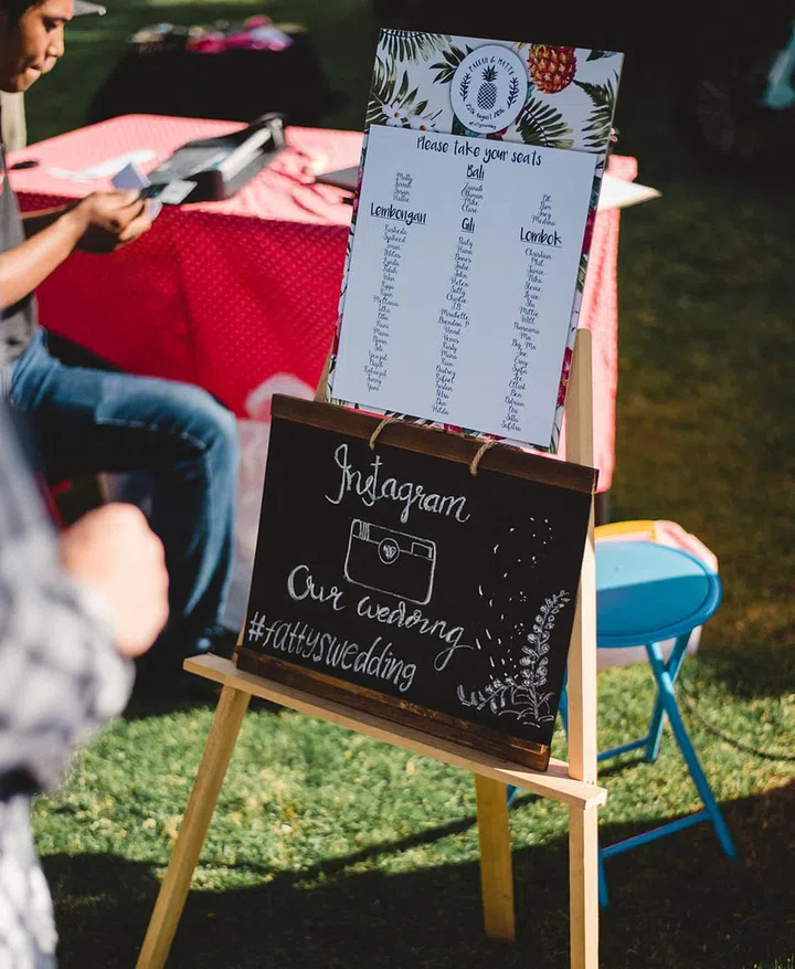 "Our wedding in Bali, which is where we live now, was a union of not only two people, but families and friends as well. We both live away from our families, so our guest list consisted of friends and relatives, who were dear to us and from all over the world. What made it all the more special was having Matthew’s childhood best friend, Bones (Andy), officiate at our wedding, and it was just so beautiful. We wanted everyone, who came from different cultures, to feel the island holiday vibe so ours had a tropical theme with lots of pineapples! We designed everything ourselves – from the invitations and favours to our wedding website, menus and even the drinks list."