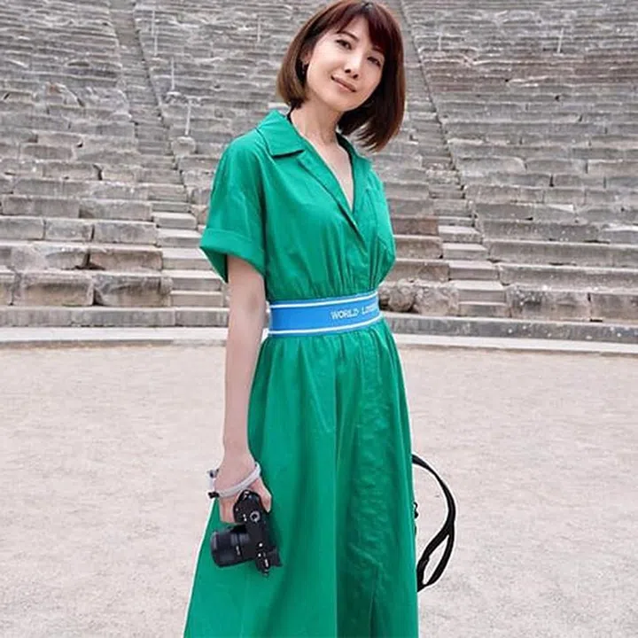 Whether it is an orange skirt with a black top, or a red puffer jacket over a black skirt, or this seafoam green shirt dress that she matched with a sky blue belt to cinch her waist. Sometimes, a pop of colour is just what you need to command attention from the crowd.
