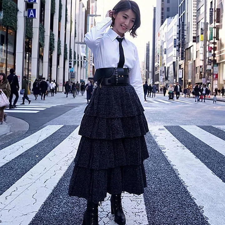 Or elevate the look like what Jeanette did — she paired her white shirt and skinny tie with a high-waisted ruffled skirt and a Dior Saddle belt and black boots — a look that can easily land her a front row seat at a Fashion Week runway show.