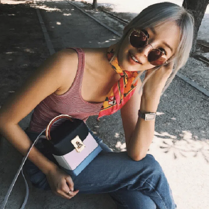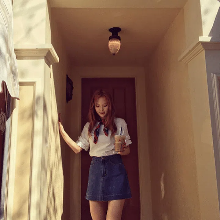 South Korean pop singer Hyuna is channelling her inner cowgirl with her red scarf and denim skirt get up. Pair this outfit with your favourite summer sandals or if you’re travelling to a country with a colder climate, fall appropriate ankle boots.