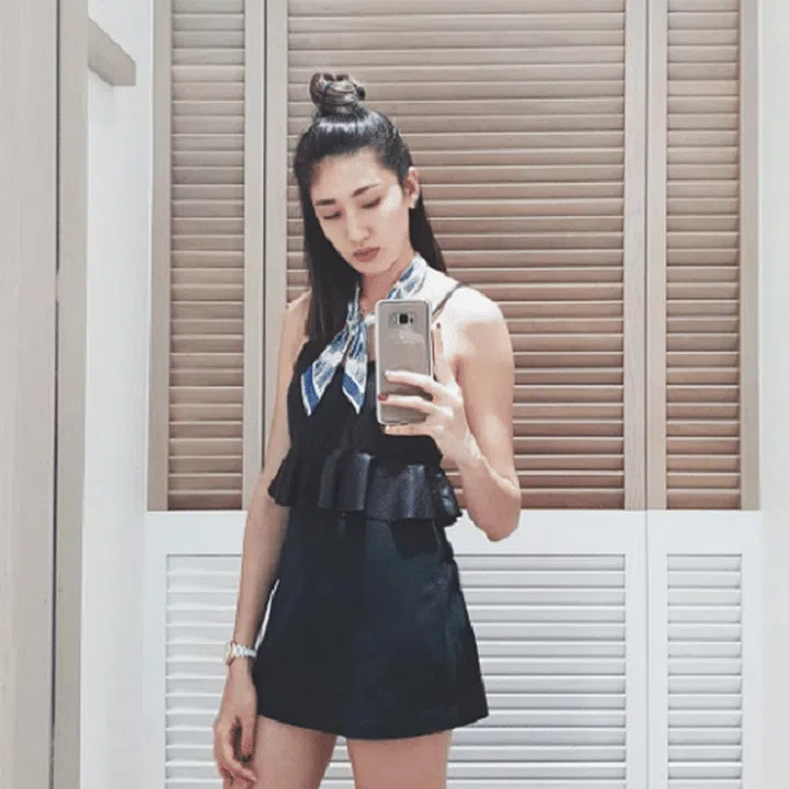 Radio deejay Kimberly Wang edges up a dainty cropped peplum top with a teal skirt and scarf tied around her neck. She completed the playful outfit by putting her hair up in a messy half bun. We love how the blue shade in her scarf complements the teal in her skirt.
