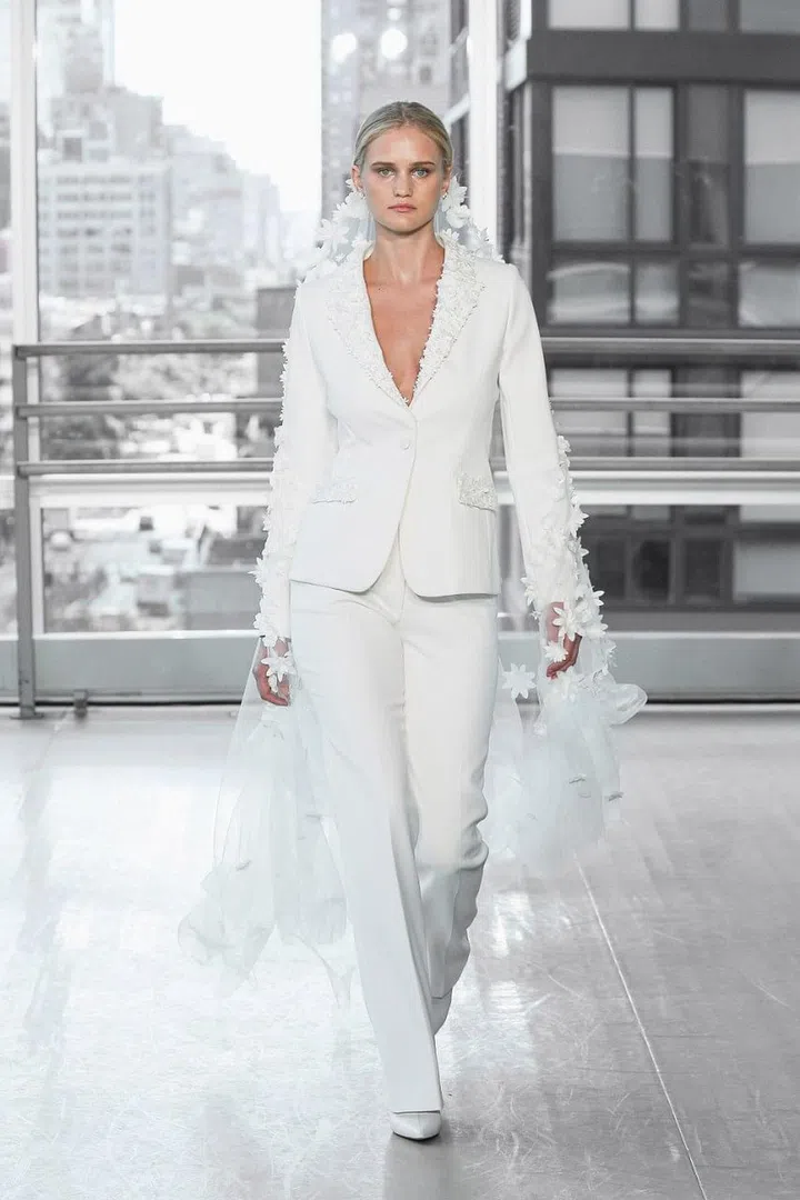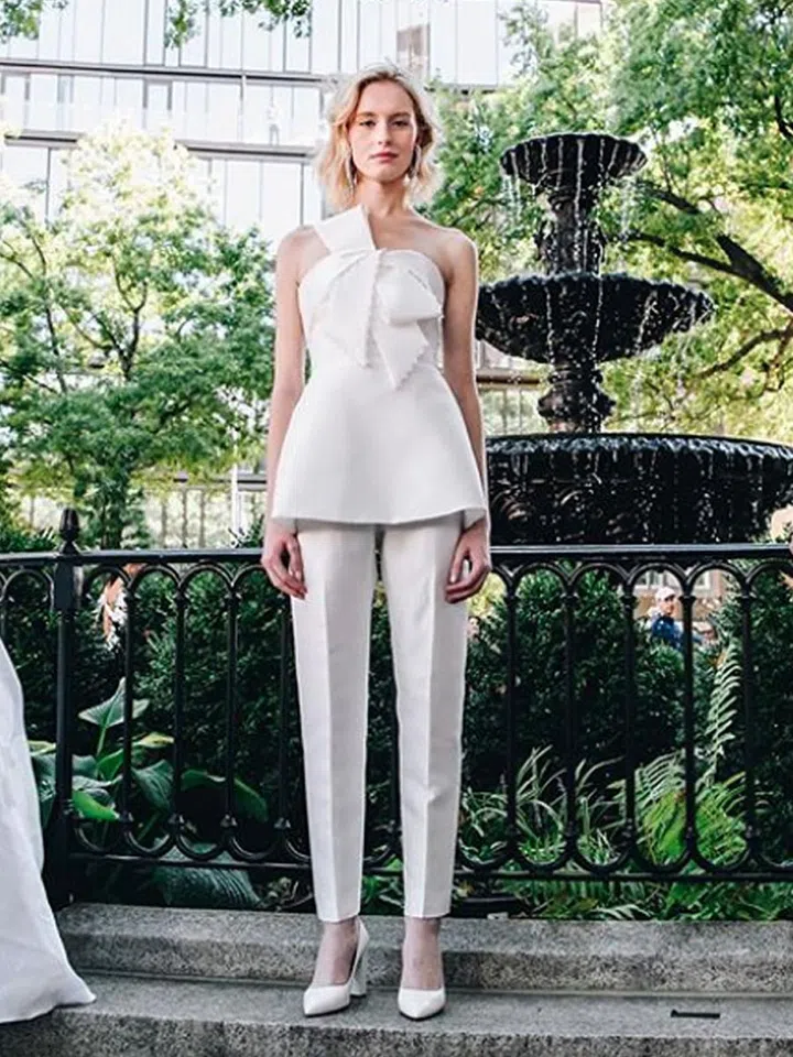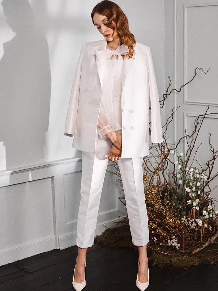Think weddings and more often than not, we imagine a bride walking down the aisle in a flouncy white gown while the groom's dapper in a suit. While dresses are often a bride's attire of choice for their big day, there's an increasing number of brides-to-be who feel more comfortable in a chic jumpsuit or a tailored blazer.