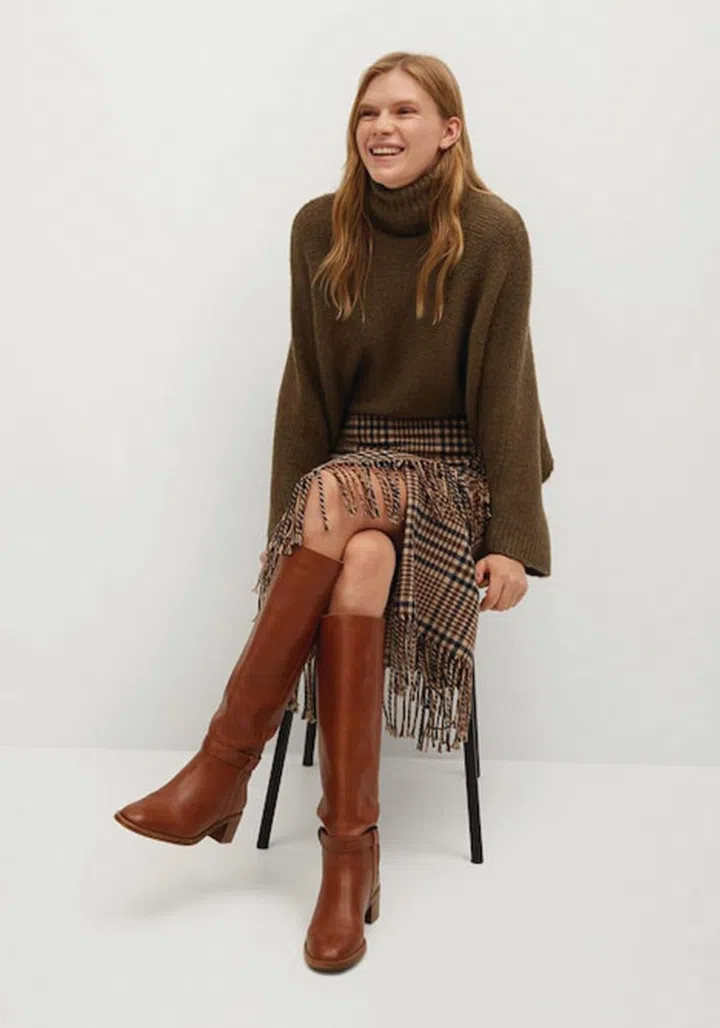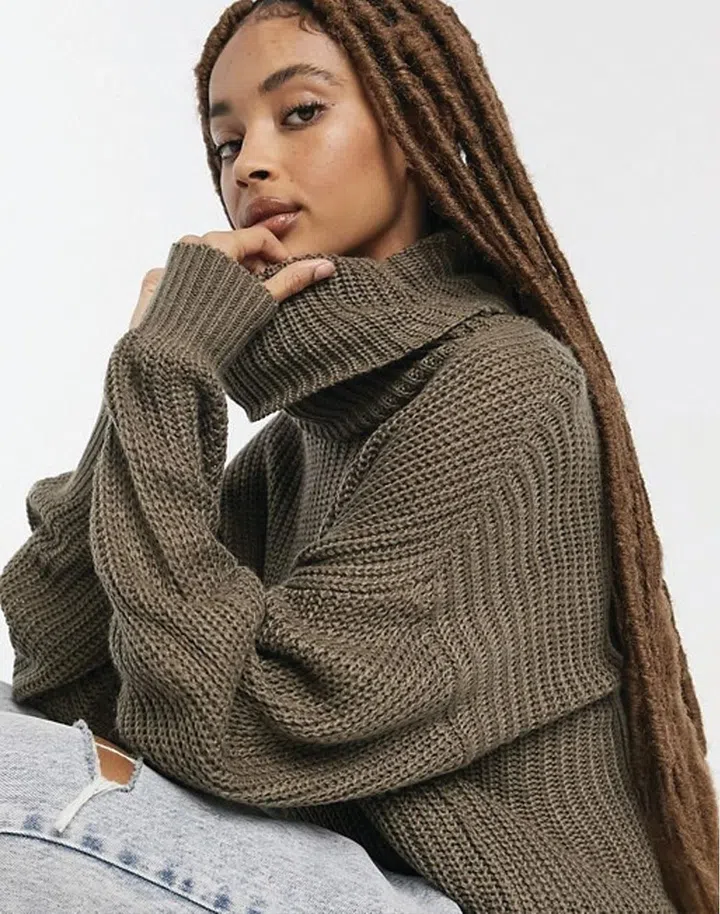 A classic turtleneck sweater in a warm chocolate brown hue, this ribbed knit number features wide sleeves and a subtle oversized silhouette that isn’t too dramatic, rendering it an uber-versatile styling essential. Pair yours with a cropped culottes and a pair of loafers for the workplace, or with neutral-coloured knit palazzo trousers for a lived-in look.
