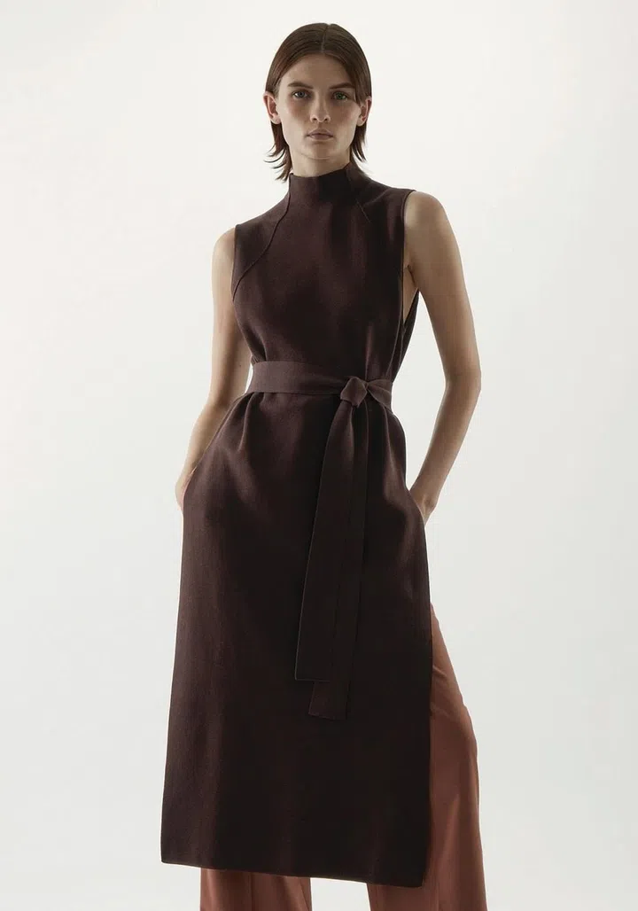 When a clothing item features clean and sophisticated lines, all while requiring minimal effort in styling in order to look luxe, we know it’s got the unequivocal makings of a timeless mainstay in our wardrobes. To that point, this long-line tunic illustrates the effortlessness and chic simplicity that we’re always on the lookout for. Rendered in dark brown and crafted from organic cotton, this contemporary number comes with a wide belt to cinch the waist, and is designed with side slits so that you can pair it with any pair of polished trousers or streamlined maxi skirts that you own.