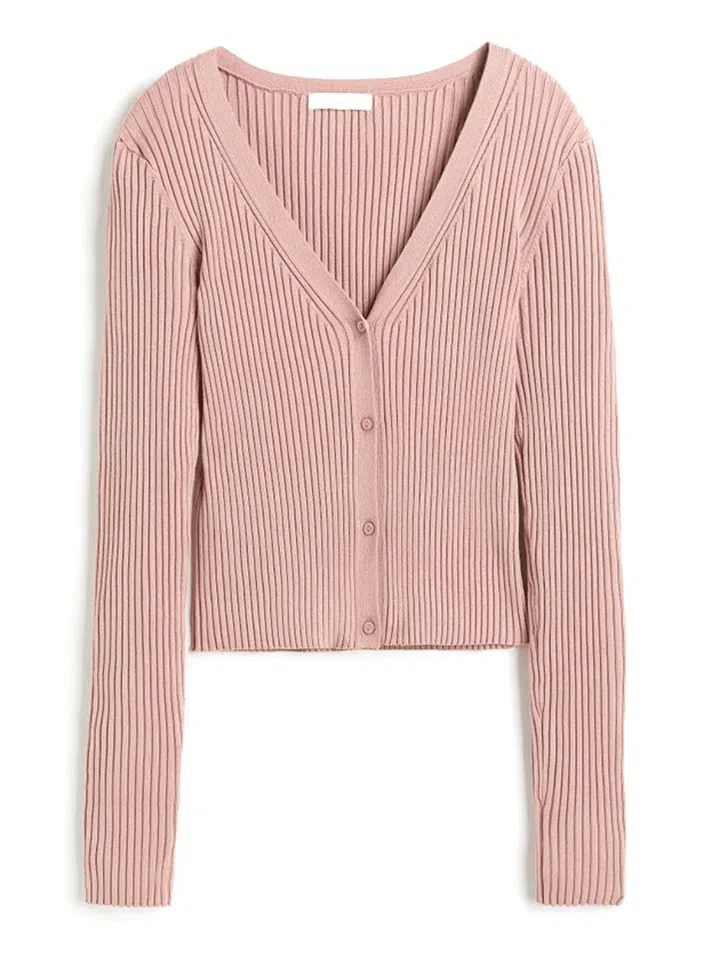 This slim-fit pink knitted cardigan makes the wearer look classy and feminine. This is also how Kim Go-eun dresses on the regular.
