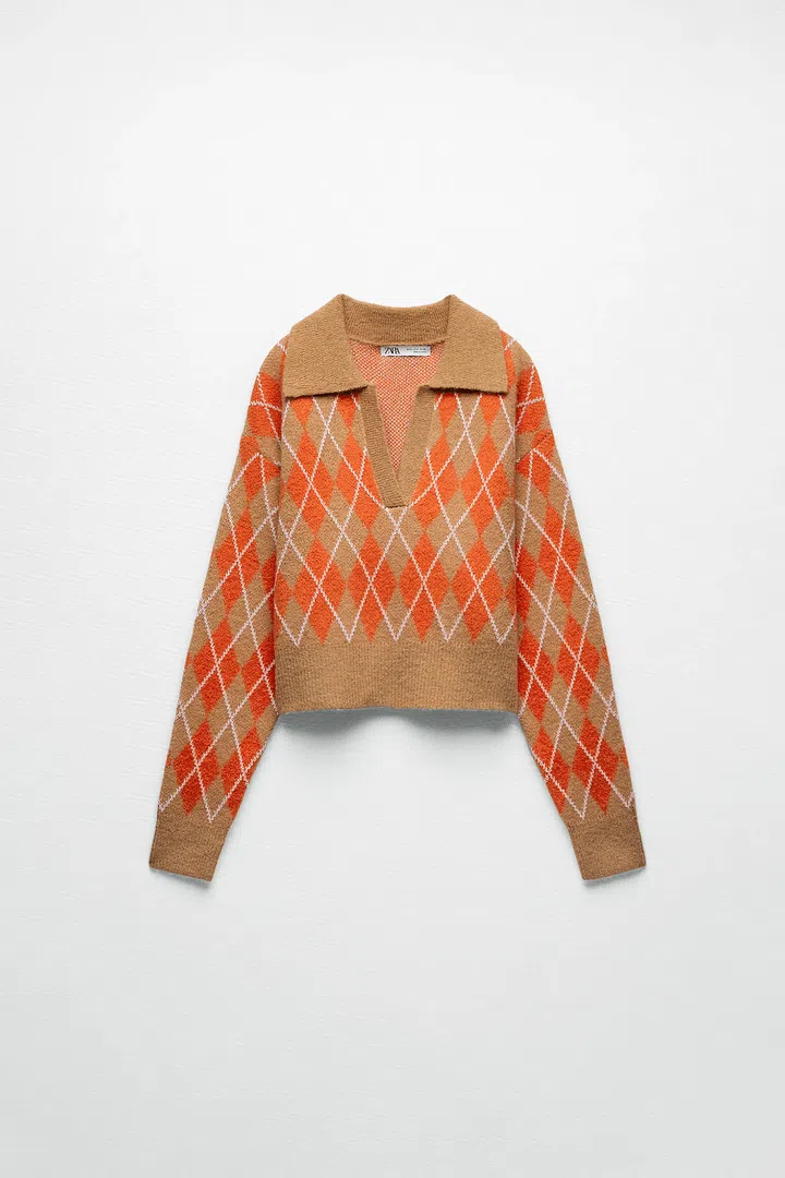 If you're looking for a similarly diamond-patterned sweater, look no further than this Zara number.