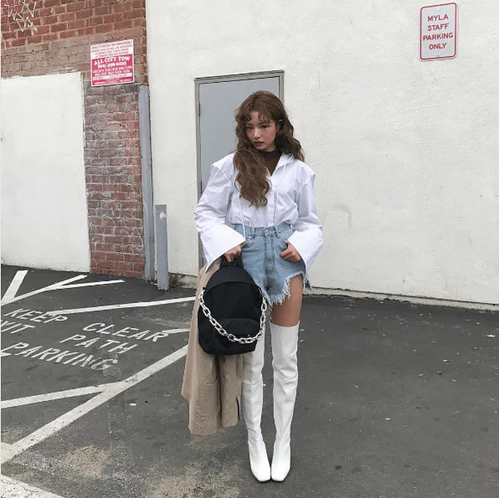 We know, when you think of thigh-high boots, Kim K immediately pops up in your head. But she’s all curves and sex appeal while the K-wave’s spin on thigh-high boots is more street style and edgy. We love how Park So Ra has styled her thigh high boots with a windbreaker top and maroon turtleneck. Singapore might get a little too hot for all those layers, so we suggest an oversized top for maximum ventilation and coolness instead.