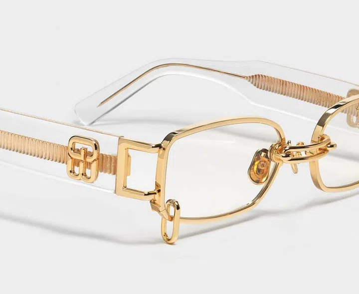 Love Kris’s enigmatic style? Now you can give off the same vibe as him with this eye-catching clear boxy-rectangular frame that features gold rivets with chain links.