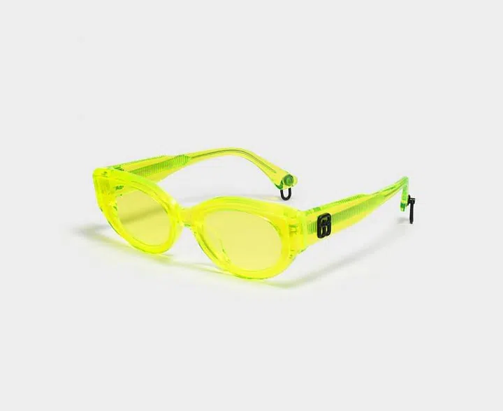 This neon yellow cat-eye shaped frame is not for the faint-hearted and is definitely for those who want to stand out in a crowd. A fresh colour palette for Gentle Monster, chain links are added at the temple links to make this eyewear pop even more.