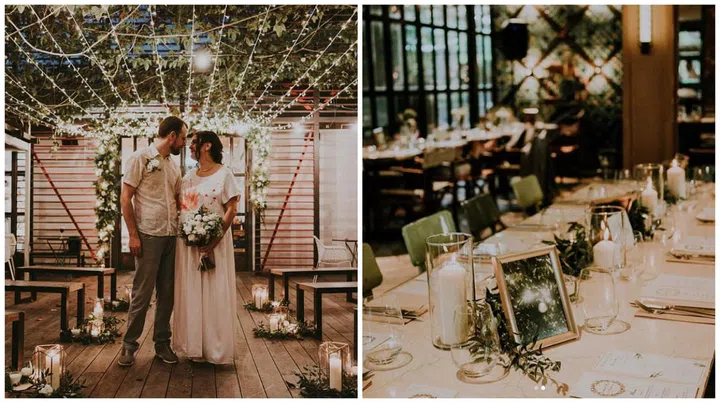 For this couple's gorgeous intimate wedding affair at Open Farm Community, fairylights and other rustic elements like wooden benches, foliage and candles created a stylish and heartwarming ambience that fitted the venue to a T.