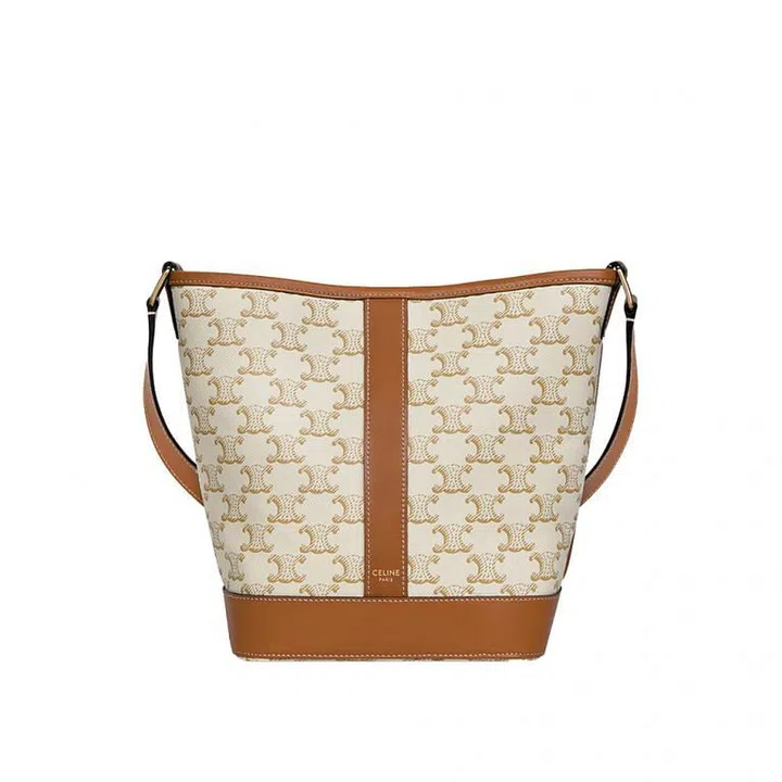 Celine by Hedi Slimane Triomphe canvas and calfskin small bucket bag, $2,350, Celine