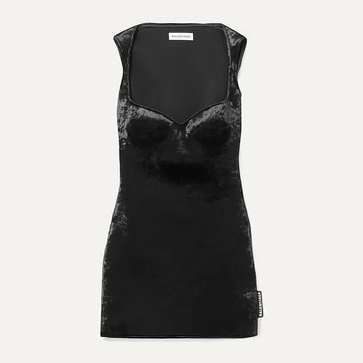 Expertly cut from velvet with sturdy neoprene backing to form a sculpted hourglass silhouette that frames the body in a flattering way, this Balenciaga dress is finished with a sweetheart neckline that draws focus to the decolletage. Take a page out of Balenciaga’s books and style this stunning number just like how the brand did at its runway show: with a pair of sheer black tights, a pair of large statement earrings, simple black square-toed pumps and a brightly coloured shoulder bag.