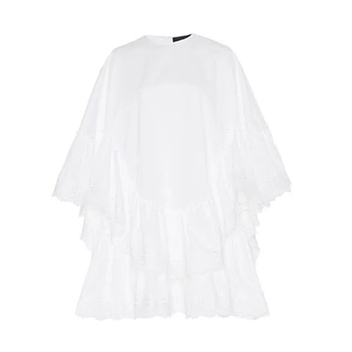 Informed by Simone Rocha’s feminine aesthetic, this voluminous cape dress features eyelet trimmings, a tiered skirt and tiered sleeves. It’s perfect for experimenting around with layering: try styling it under a shirt dress, over a white tulle skirt, or over a pair of baggy white cargo trousers for a fun, interesting combo.