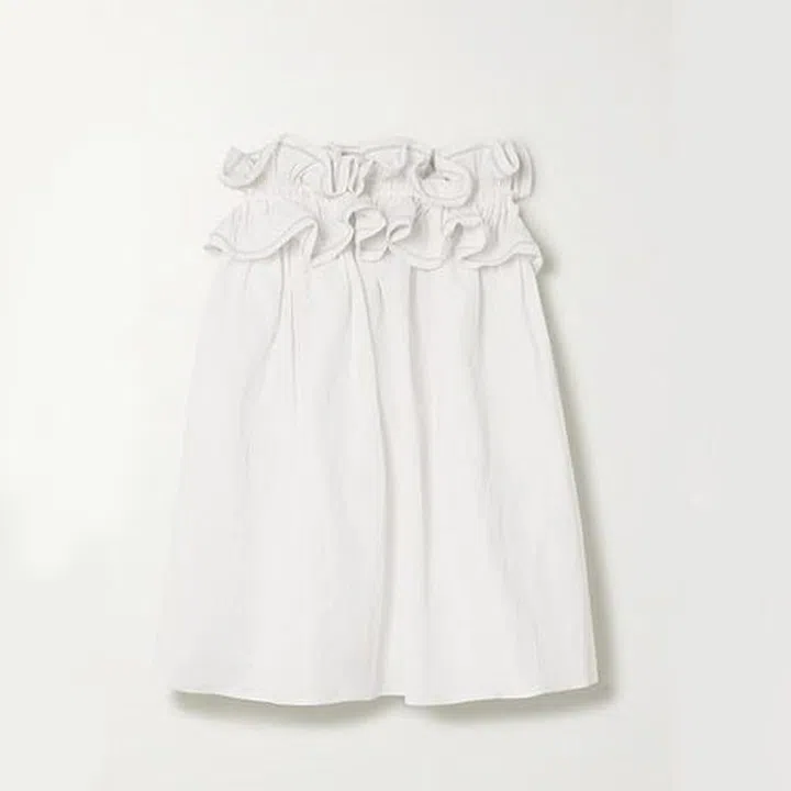 Nackiyé Milk Pudding strapless ruffled cotton, linen and silk-blend mini dress, US$578.05 (S$825.73) from Net-a-Porter