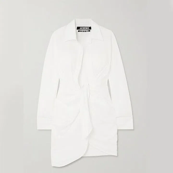 Taking inspiration from the construction of a classic white shirt, Jacquemus’s “Bahia” dress is cut from light and breathable cotton and features a sexy plunging neckline finished with a twisted drape detail. Commiting to this number on lazy weekends would be an easy no-brainer: it’s chic, simple and effortless to style around. Wear it with minimalist naked sandals and a slouchy hobo bag for running errands.