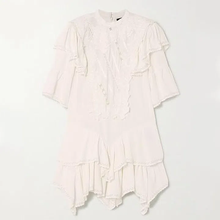 Isabel Marant asymmetric embroidered crepe mini dress, US$926.51 from Net-a-Porter