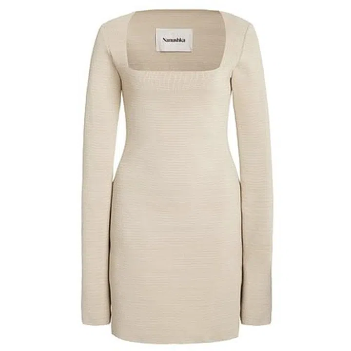 This crepe mini dress features an on-trend square neckline and a column silhouette that offers a body-hugging fit. With a flattering profile that mixes minimalism and a French girl sensibility, this number will make for a great OOTD shot. Team it with brown croc-embossed ankle boots and a ‘90s-style short strap shoulder bag.