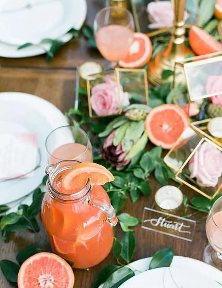 An extra pop of colour is added by using tinted drinking glasses