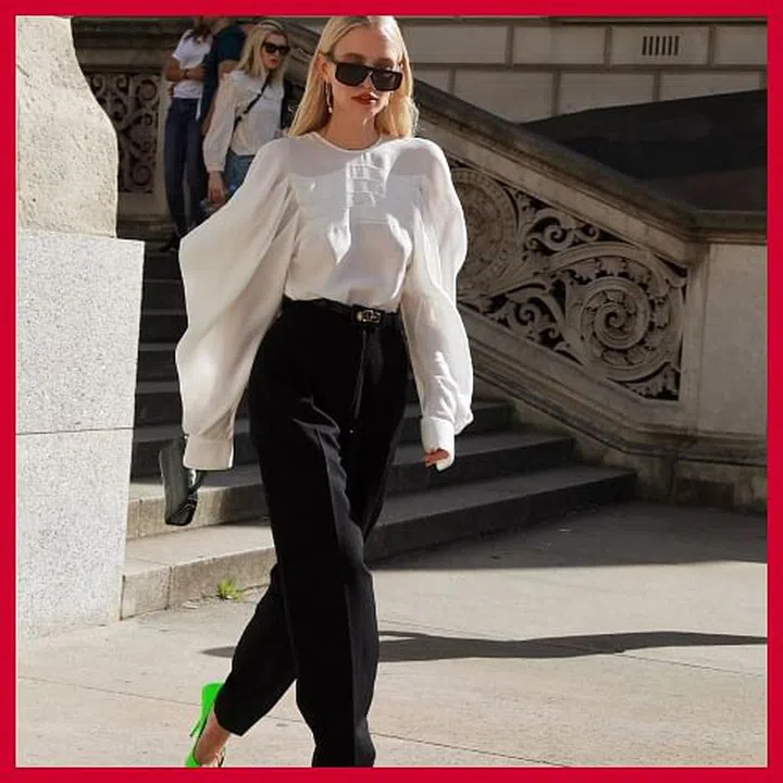 Street style may be known for its OTT outfits, but a wardrobe of classics will always be on trend. German fashion influencer Leonie Hanne knows this well as she showed up at the Victoria Beckham show in a soft, billowy blouse and sharp pants. For that wow factor, complete the look with footwear in a bold hue.