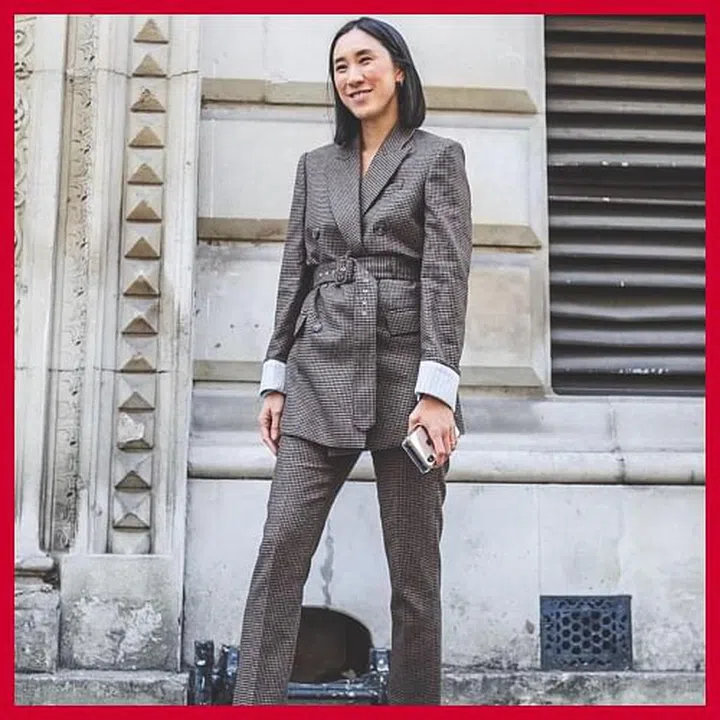 Black may be cool and timeless, but too much of it can get pedestrian. Give your look a fresher spin by opting for browns this season. Eva Chen shows us how with this two-piece pantsuit from Racil.