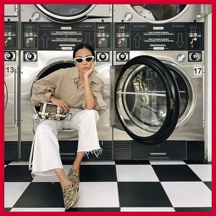 The combination of nude (think beige, sand or caramel) and white forms the pinnacle of understated chic. Street style darling Yoyo Cao wore a beige pinstriped shirt with a pair of white denim flares, and kept her accessories in the same neutral hues.