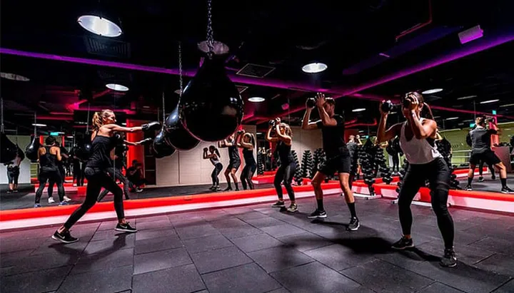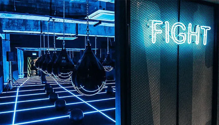 Each class, conducted in a dark room with by neon lights and pumping music, is 50 minutes long and involve some form of HIIT.