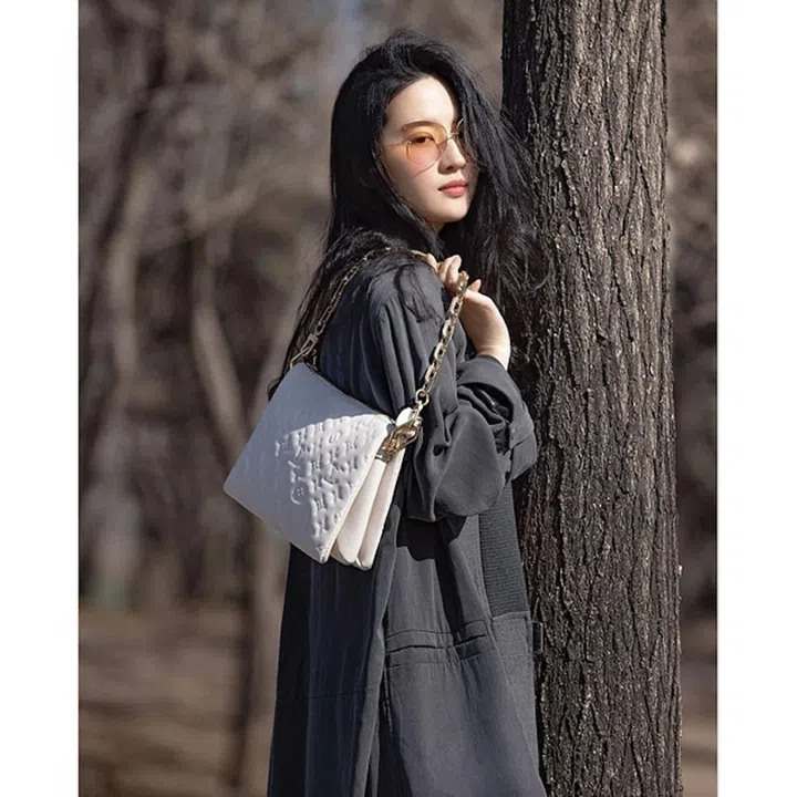 Holding the white version, Louis Vuitton spokesperson Liu Yifei looks both gentle and cool. The gold chain and monogram pattern add to her classic elegance.