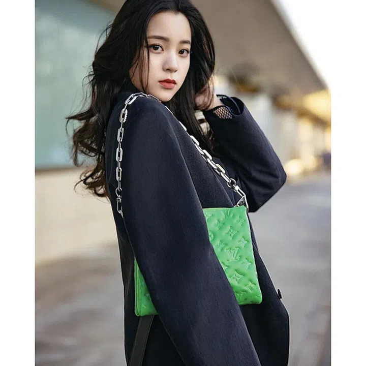 Kim Do-yeon also paired her emerald green Louis Vuitton Coussin PM bag with her white- and neutral-coloured outfits. The bag is also available in white so you can mix and match with different colourways.