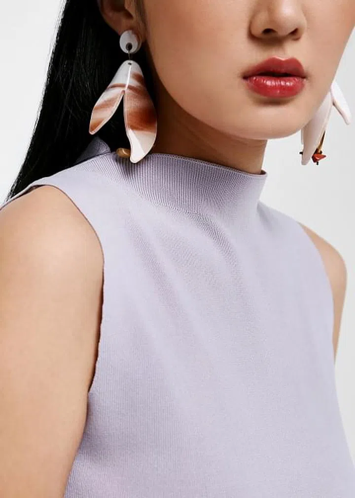 Available in over ten colours, this funnel neck knit top is the perfect not-so-basic basic. Draw attention to your face with statement drop earrings with this high funnel neckline for a super chic look.