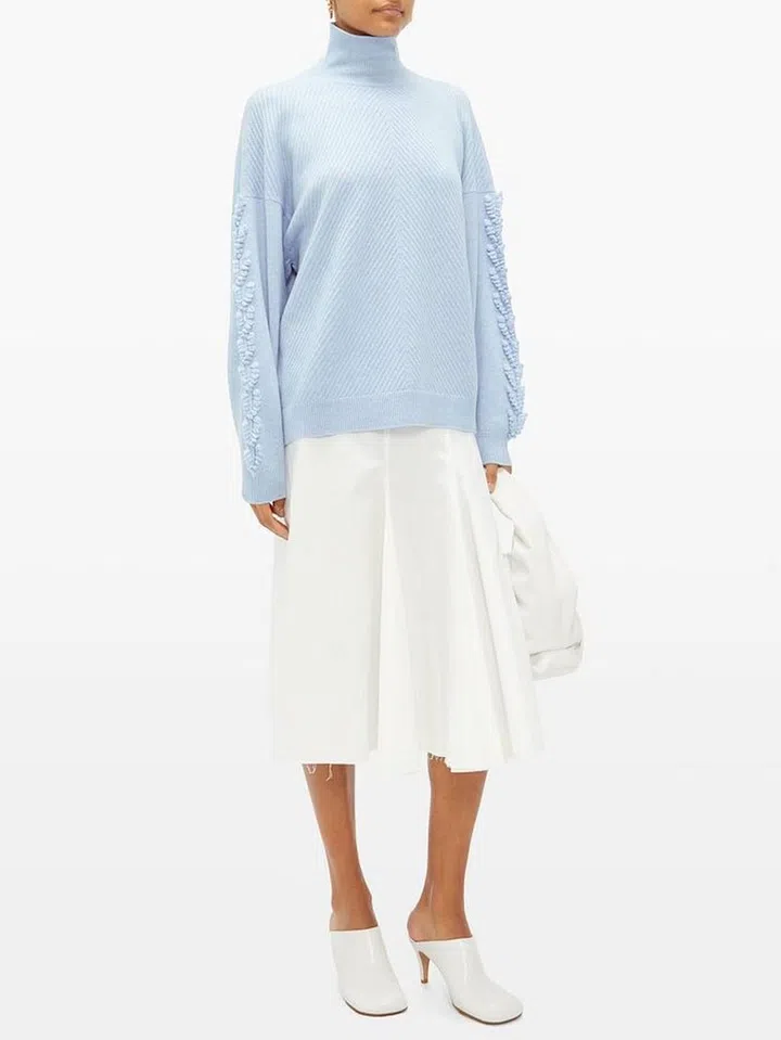Get: Barrie high-neck embroidered-sleeve cashmere sweater, $1,245 from MatchesFashion
