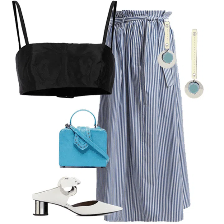 Osklen crop top, $262; Mehry Mu bag, $814; Proenza Schouler shoes, $1,453; Weekend Max Mara skirt, $324; Marni earrings, $465