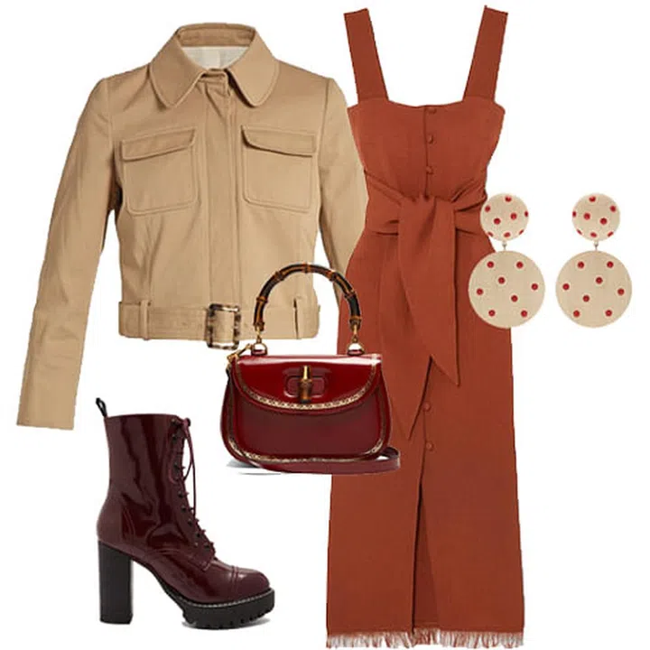 A muted shade of terracotta rust not only looks chic, but will help amp up your luck this month too. Go for a rust red belted dress and pair this with a cargo-style jacket and burgundy high-heeled boots. For a touch of quirkiness, add a pair of statement polka dotted earrings to liven up your ensemble.