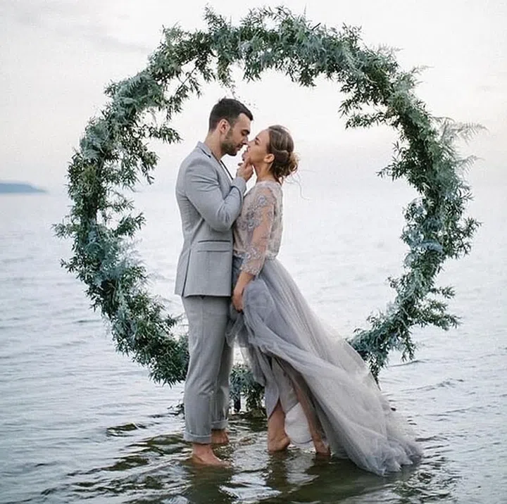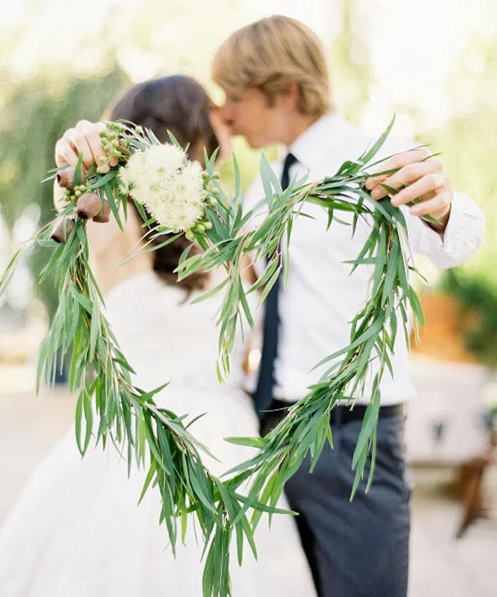 This adorable heart-shaped wreath is a simple but creative way to add panache to your wedding pictures. For more props you can employ in your pictures, check out this story.