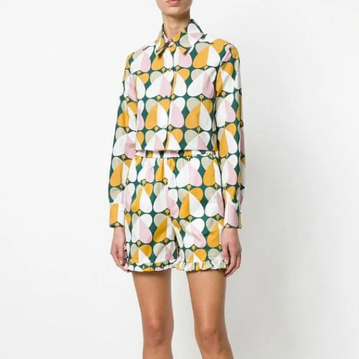 La Doublej boy shirt, $544 and ruched ruffle shorts, $319 from FarFetch.
