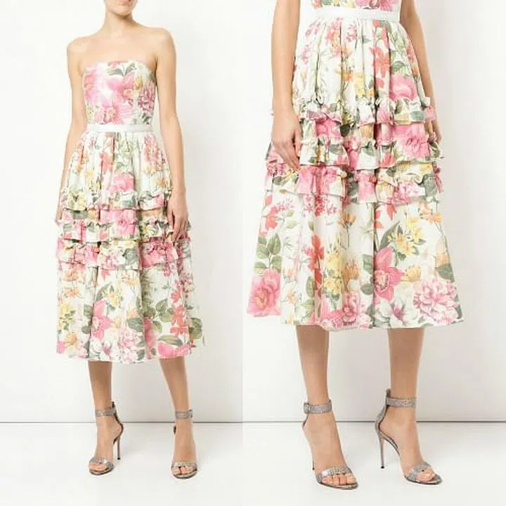 Banbah lotus print tube top, $610 and lotus print skirt, $776 from FarFetch.