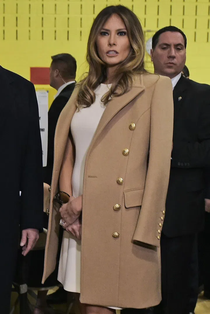 2016, Melania and Donald Trump at a polling station in a school during the 2016 presidential elections.