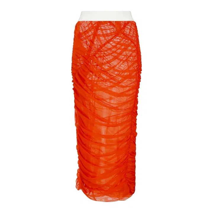 Sporty mesh gets a dose of classic Grecian drapery in the form of this midi length skirt. Featuring a white elastic waistband, you can wear it with a white tee or crop top and naked sandals.